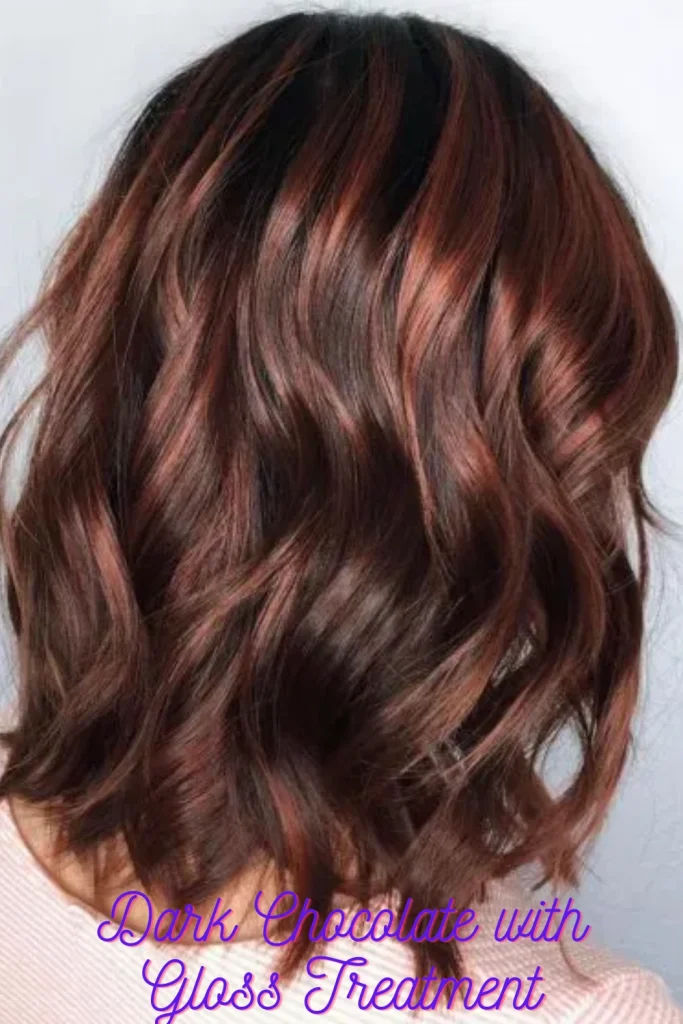 By pairing a dark chocolate color with high-shine treatments, you get a look that’s incredibly sleek and luxe. Think mirror-finish hair that reflects light beautifully in every wave and movement.